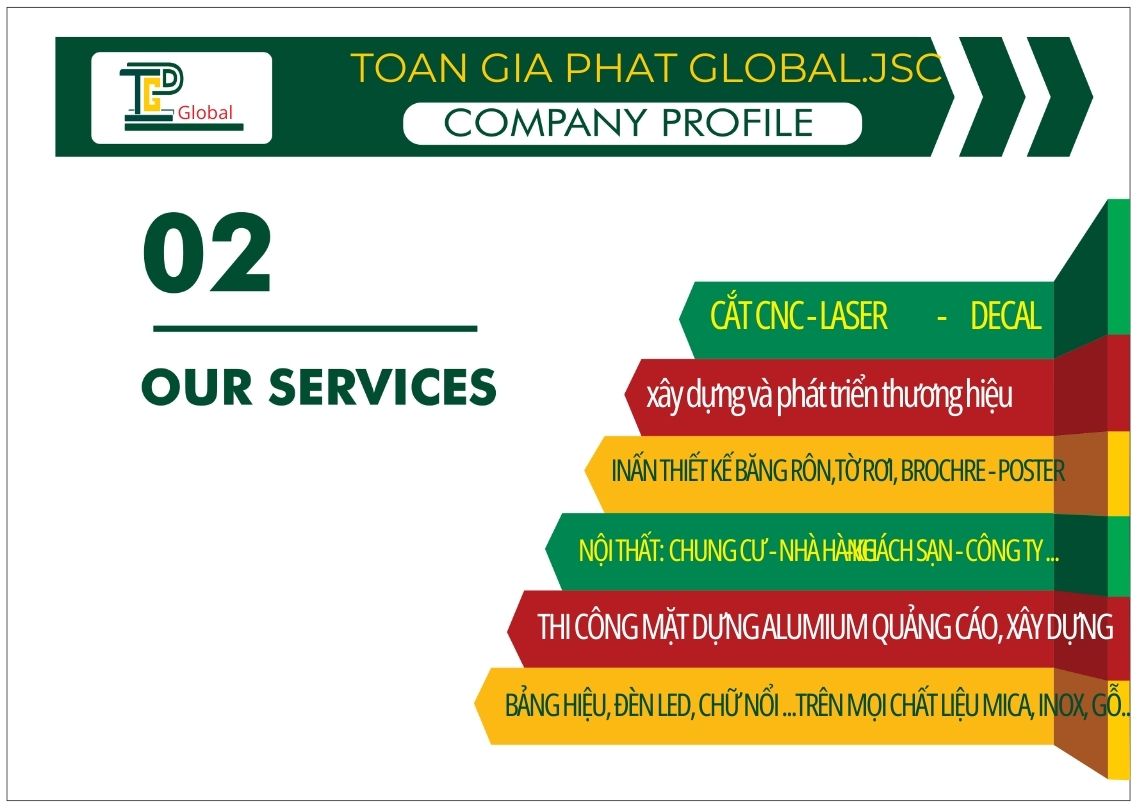 Công ty Cổ phần Toàn Gia Phát Global (TGP) được thành lập năm 2016, là doanh nghiệp hoạt động đa ngành nghề, hướng đến mục tiêu cung cấp các giải pháp toàn diện, chuyên nghiệp và hiệu quả cho khách hàng trong nhiều lĩnh vực.